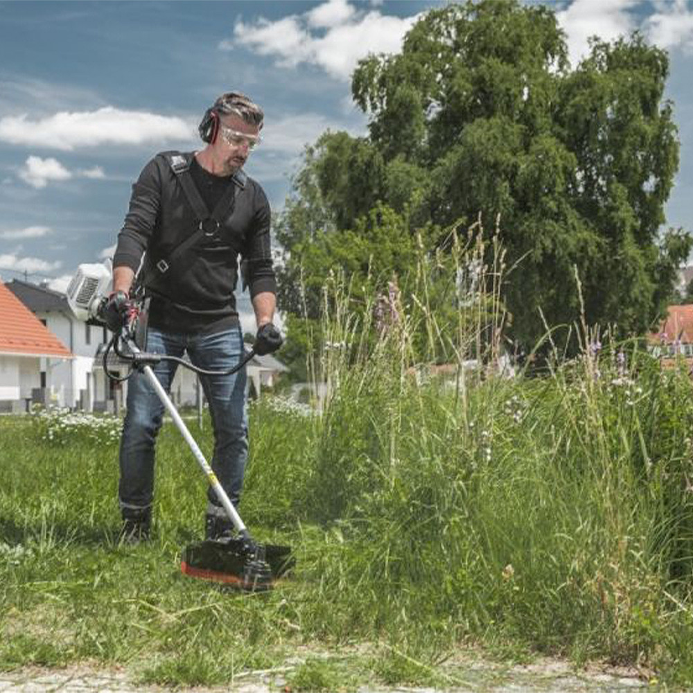 A könnyen induló 1,25 kW-os, legújabb generációs 2 ütemű motor révén ezzel a motoros kaszával nagy teljesítményű kaszát birtokol, melyet kezdőként és hobbikertészként is kényelmesen, biztonságosan használhat. Segítségével erősen jut át bármilyen terepen – akár a nagyobb gyepeken, a magas fűben, a sövényeken vagy bozótban.