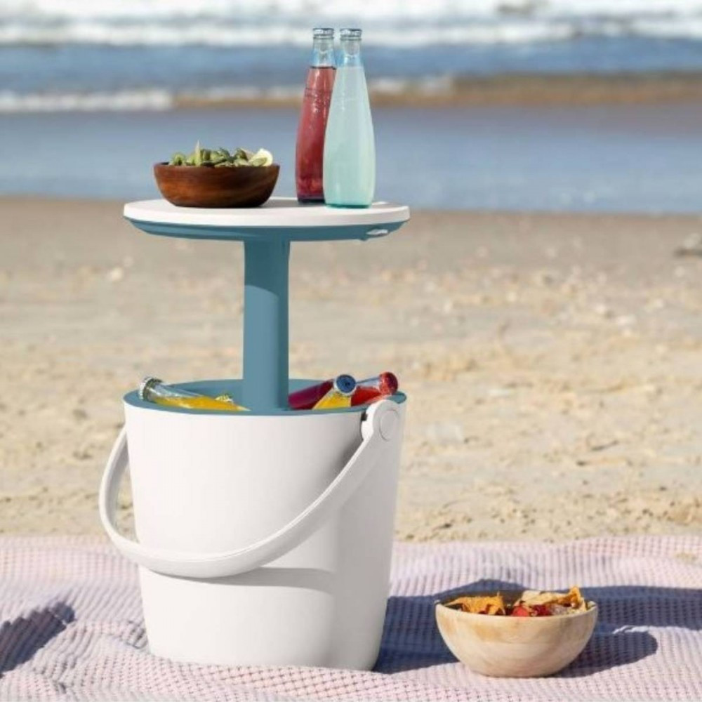 Egy pillanat hűsölés a barátokkal való strandolás során. Milyen könnyedén kivehető a lehűtött üveget a bárból... Jellemzői és előnyei, az italok és rágcsálnivaló hidegen tartésa, illetve egy oldalsó asztal megléte. A fogantyú megkönnyíti a mozgatásban. Ideális bútor strandra, egy parkban megszervezett piknikre vagy egy baráti találkozóra. Könnyen tisztítható, ellenáll a szélsőséges időjárási viszontagságoknak és az UV sugárzásnak.
