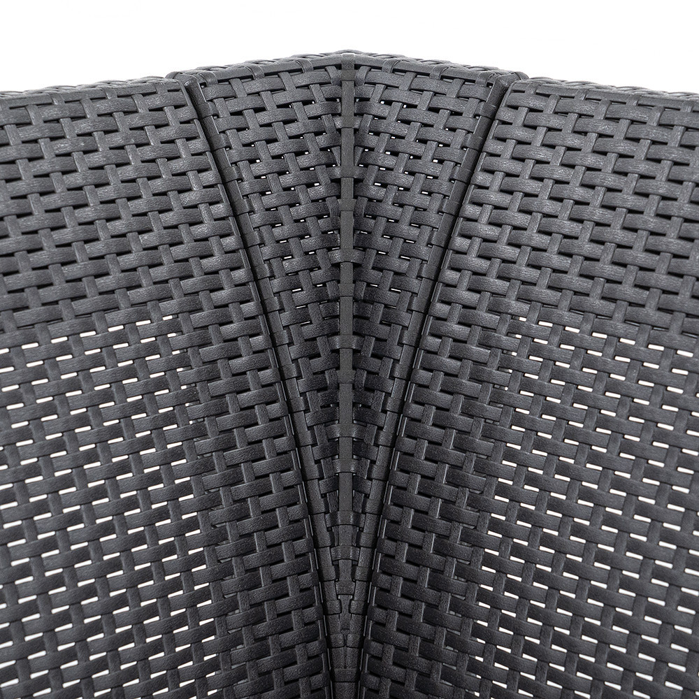 A modern, sötétszürke rattan hatású felület esztétikus és rendkívül időjárásálló – nem fakul, nem reped, és még UV-védelemmel is rendelkezik. A puha ülőpárnák a csomag részei, így rögtön használatba is veheted.