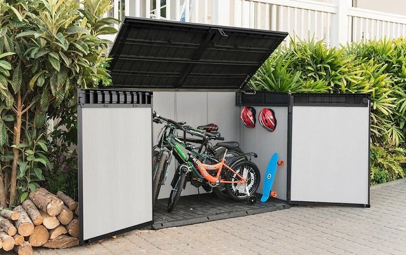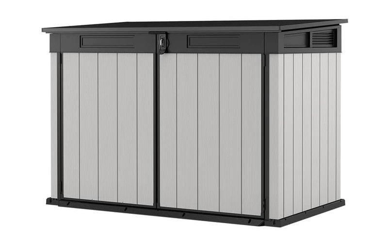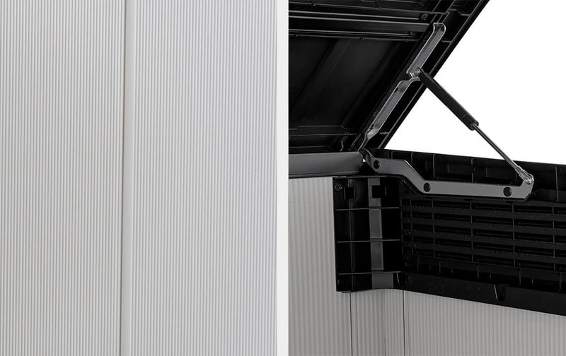 Adjon hozzá szuper tágas, többcélú tárolót kertjéhez. Bár nem fog sok helyet foglalni, a Premier Jumbo nagy kapacitású, és elég széles és magas ahhoz, hogy bármit elférjen benne, beleértve a kerékpárokat, kerti felszereléseket és kerti bútorokat.A fedél hidraulikus dugattyúi megkönnyítik a tetejének kinyitását, még egy kézzel is.Az időjárásálló dupla falak stabilitást és karbantartást nem igényelnek, míg a beépített szellőzés és a padlólap tisztán, szárazon és frissen tartja a tartalmat.