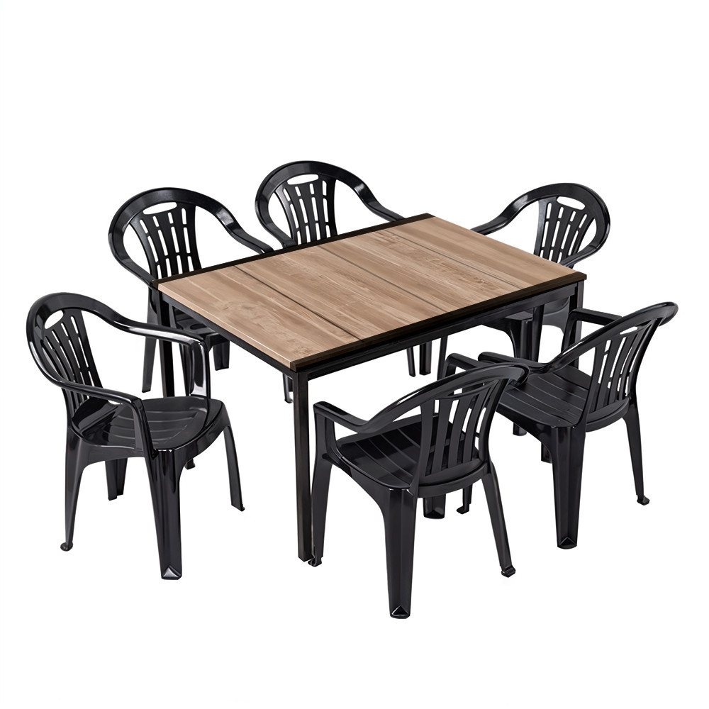 A prémium fröccsöntött polipropilén nem repedezik, nem rozsdásodik, nem fakul. A székeket kedvedre hagyhatod kint a perzselő napon vagy záporban – a Rowen garnitúra makulátlanul tűri a szélsőségeket. A Porto asztal DecoCoat™ fa-hatású felülete karc- és vízálló, a fekete acélváz pedig masszív stabilitást ad.