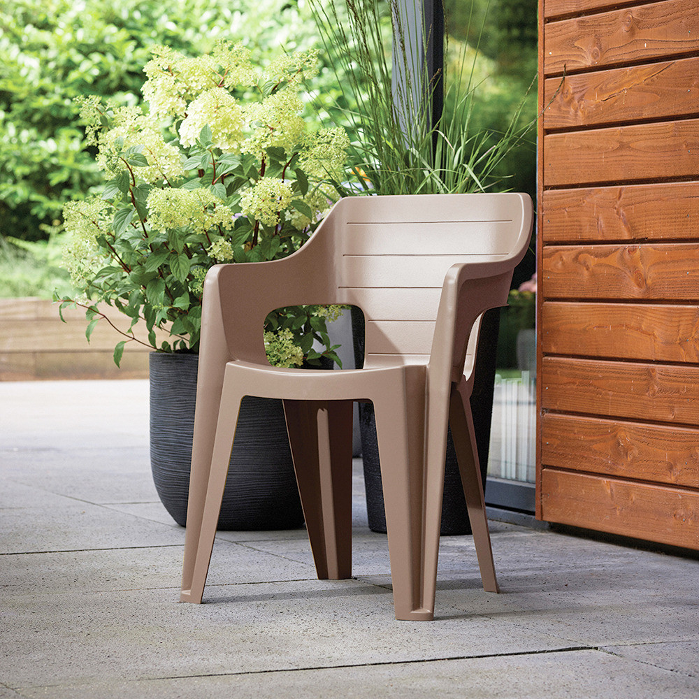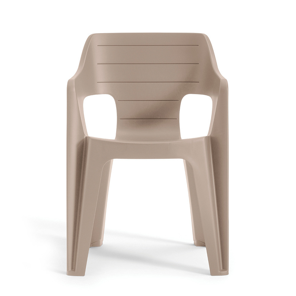 A Bilbao műanyag kartámaszos kerti szék modern megjelenésével és letisztult formavilágával jól illeszkedik a kert, terasz vagy erkély bútorai közé. A stílusos kialakítás beltéri használatra is alkalmassá teszi, például étkezőkben vagy közösségi terekben.