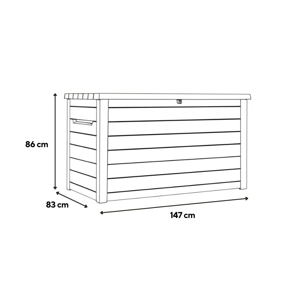 A stabil kialakítás és az integrált fogantyúk megkönnyítik az elhelyezést és a használatot. A nagyméretű kerti láda segít abban, hogy a kültéri tér rendezett és átlátható maradjon, miközben a tároló maga is a kert stílusos eleme lehet.