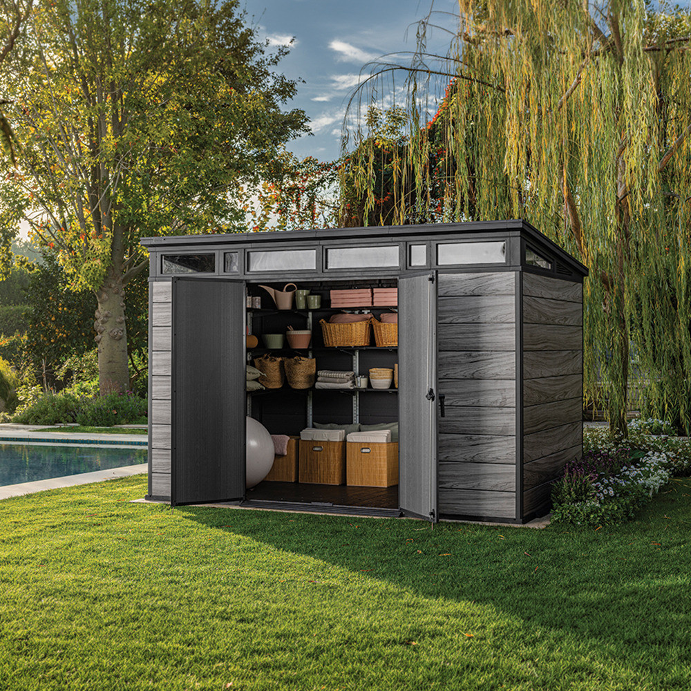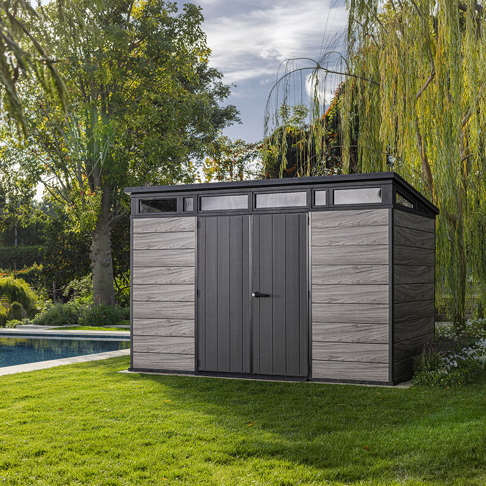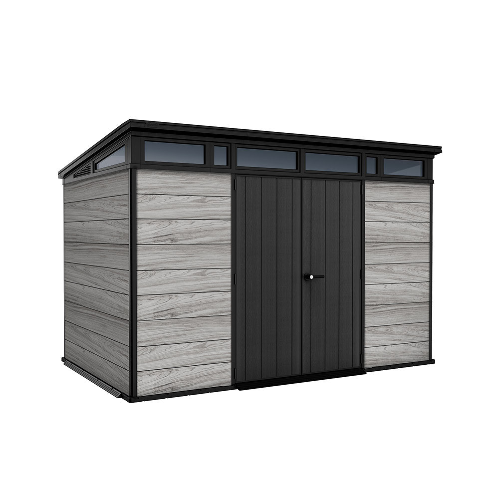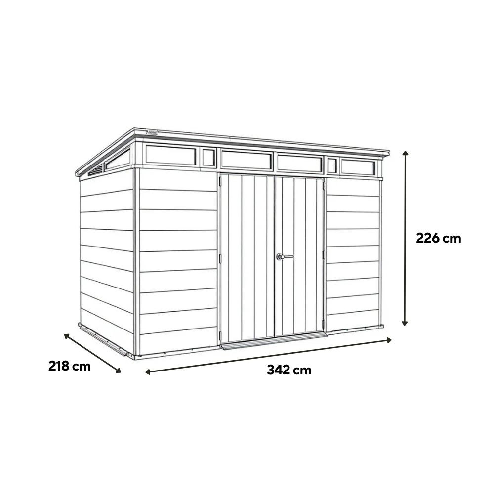 A Signature Penthouse 11x7 kerti ház a Signature Collection prémium kategóriás tárolómegoldásai közé tartozik. Modern kialakítása és természetes hatású felülete elegáns megjelenést biztosít, amely harmonikusan illeszkedik a kert környezetéhez.