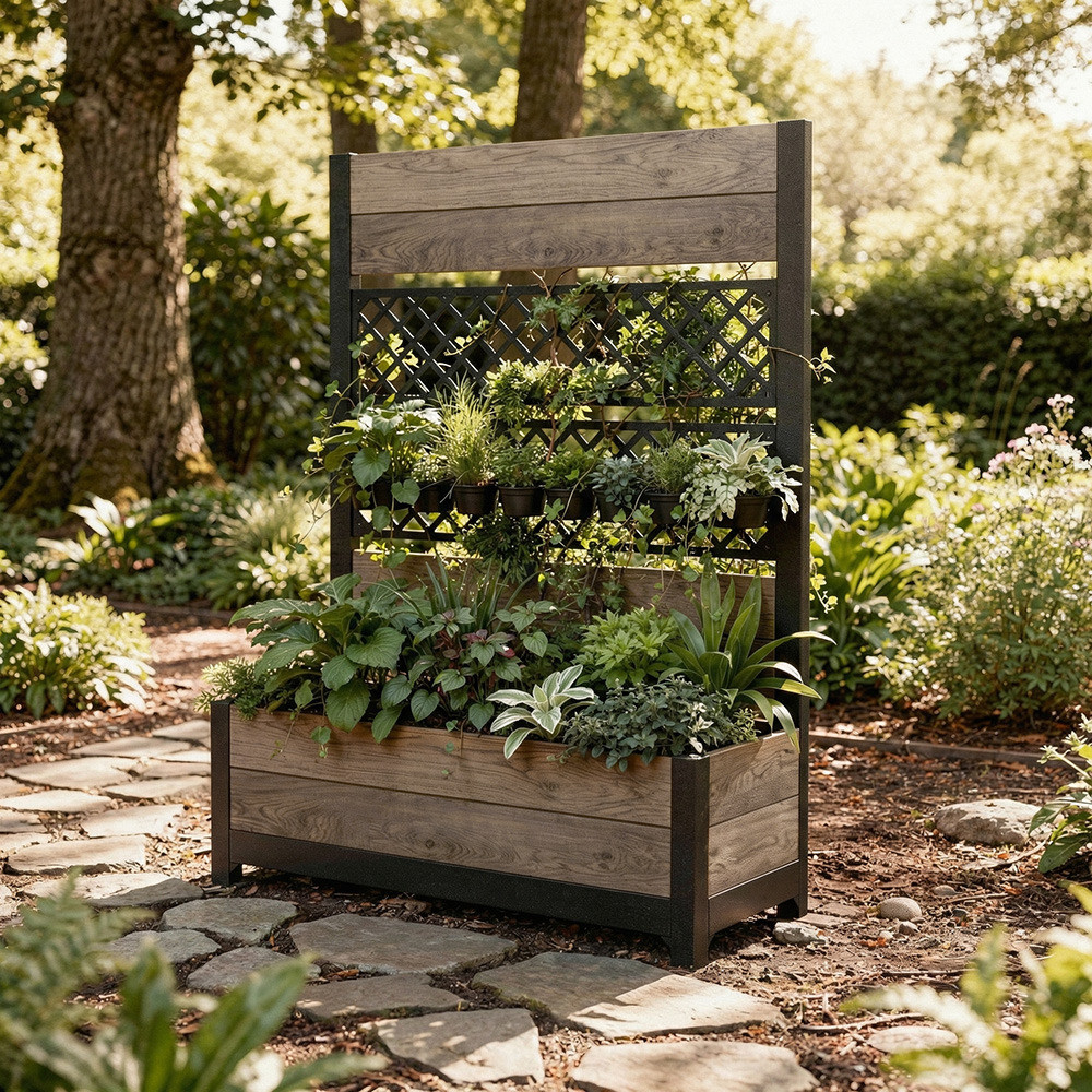 Időjárásálló műanyag kerti láda természetes kőrisfa hatású megjelenéssel