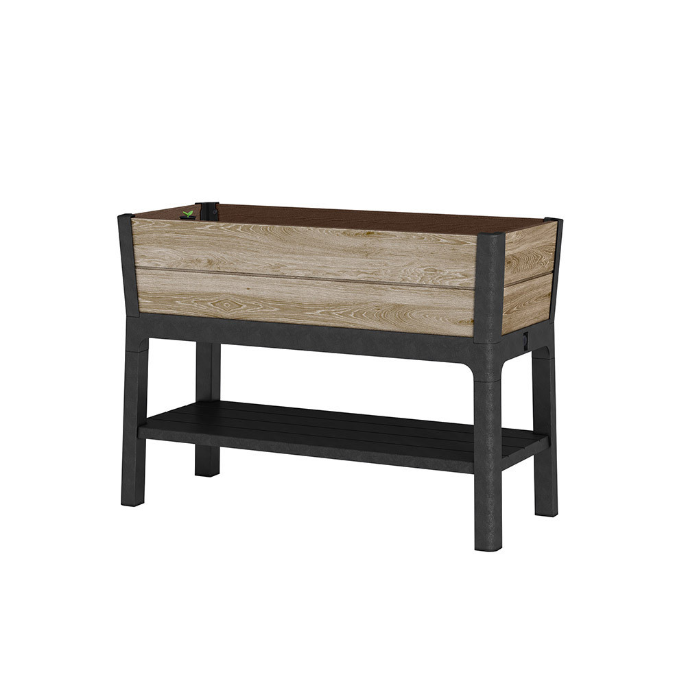 - Terméknév: Deco elevated műanyag kerti virágláda alsó polccal 110L kőrisfa