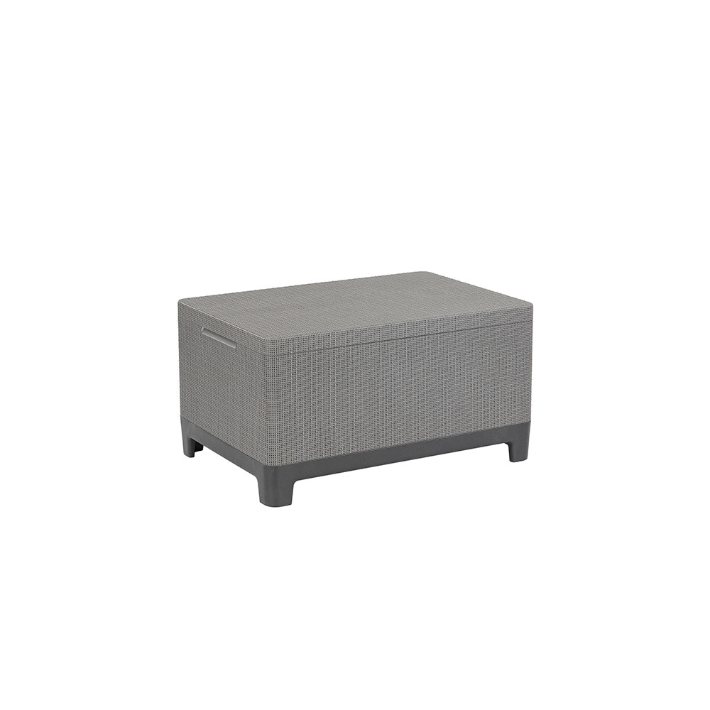 A Scandi jute tárolós asztal letisztult, modern formavilágot képvisel, amely illeszkedik a Scandi kollekció stílusához. A grafit–hűvös szürke árnyalat visszafogott és könnyen kombinálható különböző kültéri bútorokkal és burkolatokkal. A kompakt kialakítás lehetővé teszi, hogy kisebb teraszokon, erkélyeken vagy kertben is praktikus elhelyezést kapjon, miközben önálló bútordarabként is esztétikus megjelenést biztosít.