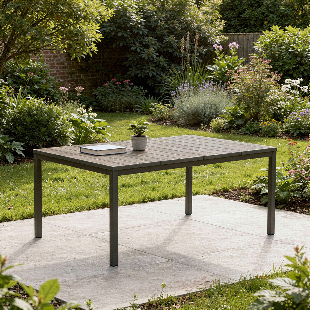 A Porto Nova 160 kerti asztal modern kialakításával és természetes fa hatású felületével stílusos megjelenést biztosít a kertben vagy a teraszon. Ideális választás családi étkezésekhez és baráti összejövetelekhez.