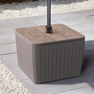 A rattan hatású felület esztétikus és modern megjelenést biztosít, amely harmonikusan illeszkedik különböző kerti bútorokhoz. A kőrisfa-cappuccino szín elegáns és könnyen kombinálható más kültéri berendezésekkel.
