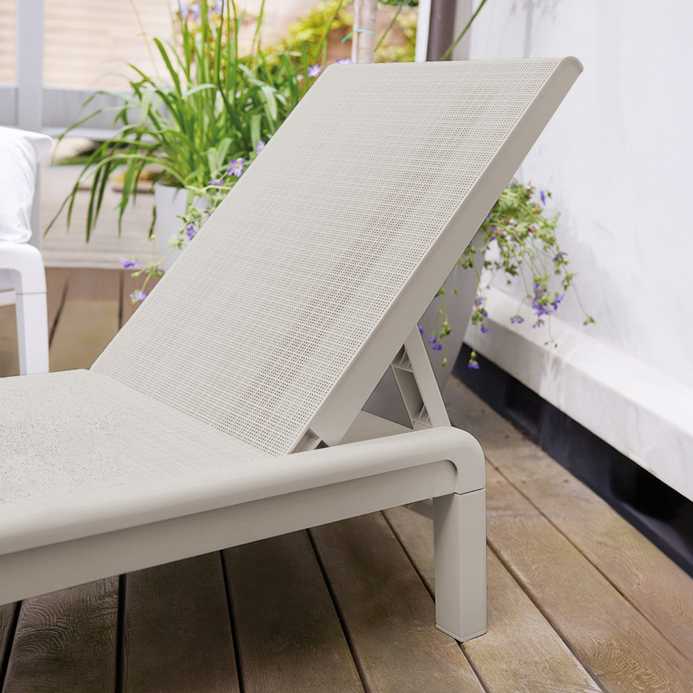 A háttámla négy különböző pozícióba állítható, így a napozóágy könnyen az egyéni igényekhez igazítható, legyen szó pihenésről, olvasásról vagy napozásról.