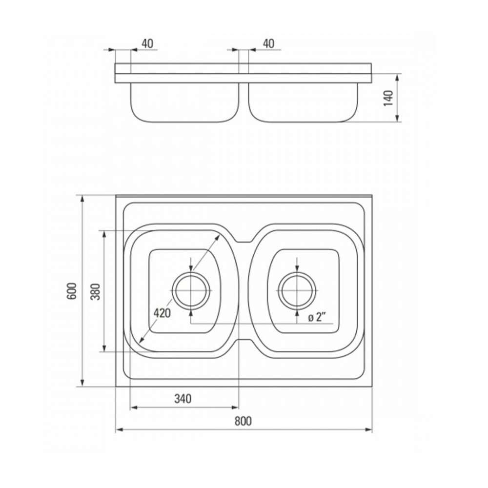 deante ZM5320N Tango rozsdamentes mosogató két medencés műszaki rajz