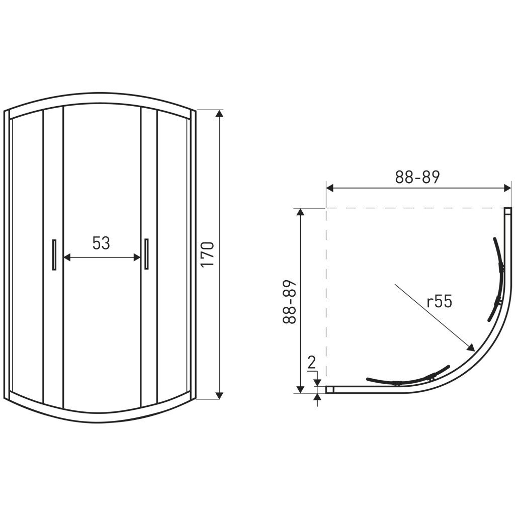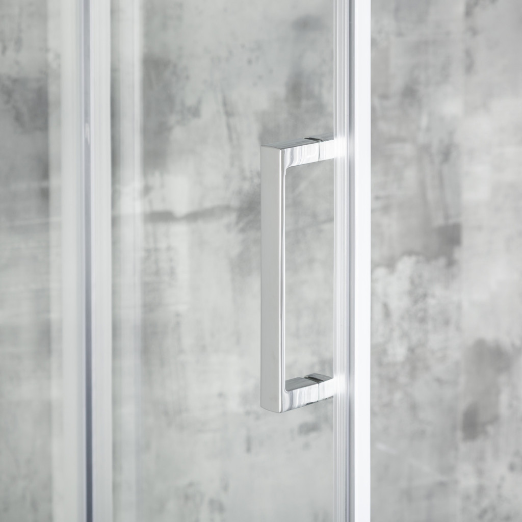A kétszárnyú tolóajtók használata lehetővé teszi a kényelmes nyitást anélkül, hogy szabad helyet kellene hagyni a kabin előtt. Az átlátszó, 5 mm-es edzett üveg ütésállóságot és biztonságot nyújt a mindennapi használat során. A szerkezeti stabilitást krómozott alumínium profilok garantálják , amelyek ellenállnak a nedvességnek és a korróziónak.