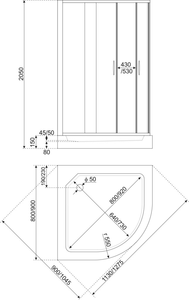 Az Intro zuhanykabin 90 × 90 cm műszaki adatai: