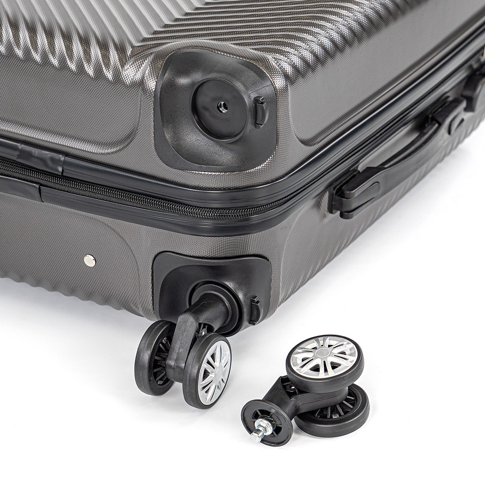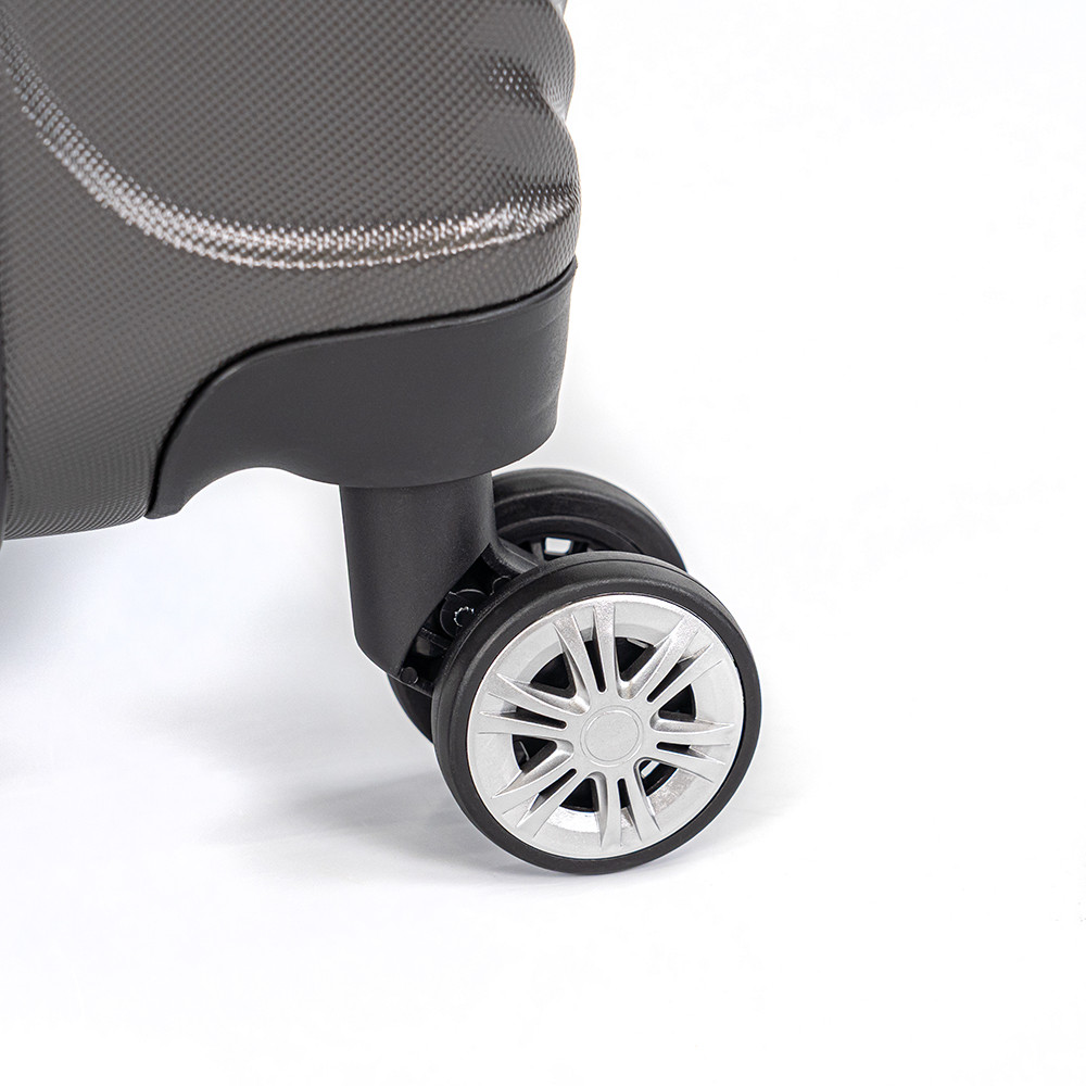 A négy dupla kerék halk és gördülékeny mozgást biztosít, bármely irányban. A kerekek levehetők, így a bőrönd mérete légitársasági szabványoknak is megfelel – különösen hasznos kézipoggyászként történő használat esetén.