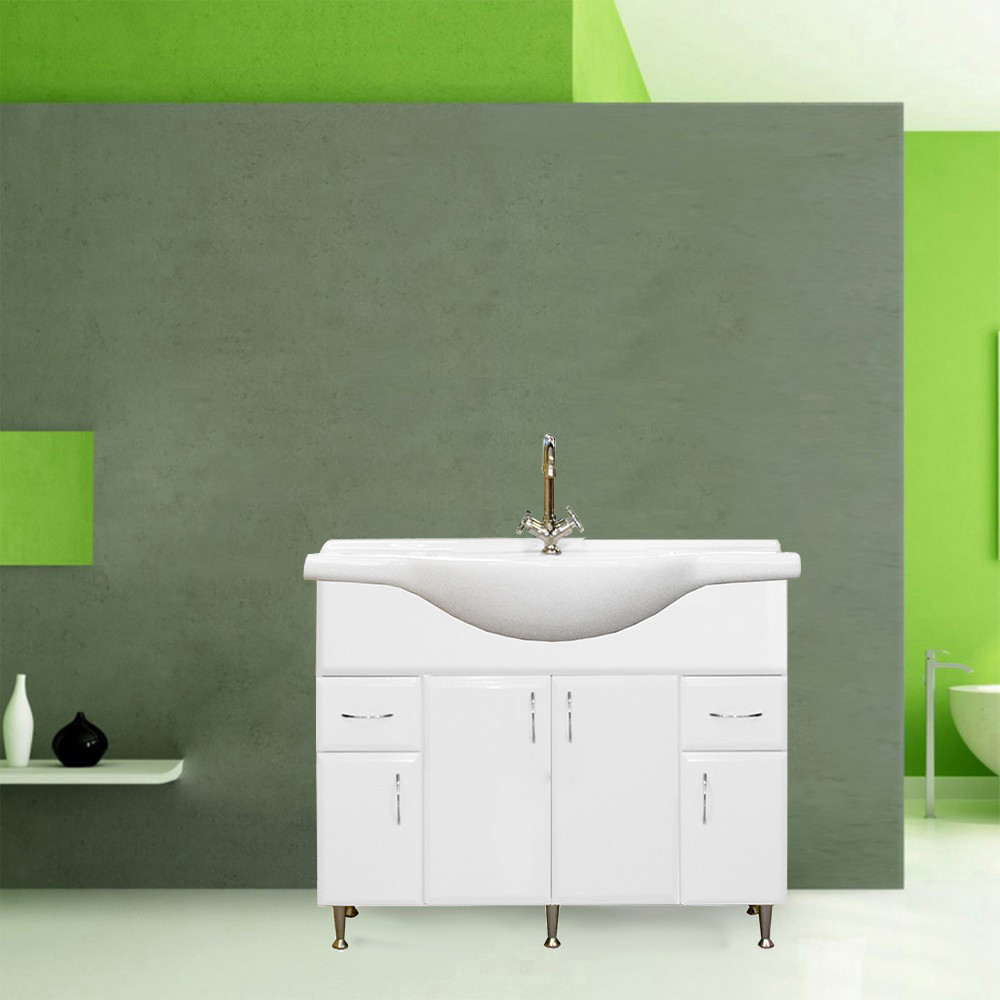 A fürdőszoba bútor kevés helyet foglal viszont tágas szekrénnyel és fiókkal rendelkezik ahol kényelmesen elférnek a fürdőszobai pipere eszközök. Kevés helyigénye miatt kisebb fürdőszobák berendezésére is alkalmas, például panel lakásokban. A termék magas minőségű bútorlapból készül és színben passzoló élzárókkal van ellátva. A fürdőszoba bútor mosdóval együtt kapható.
