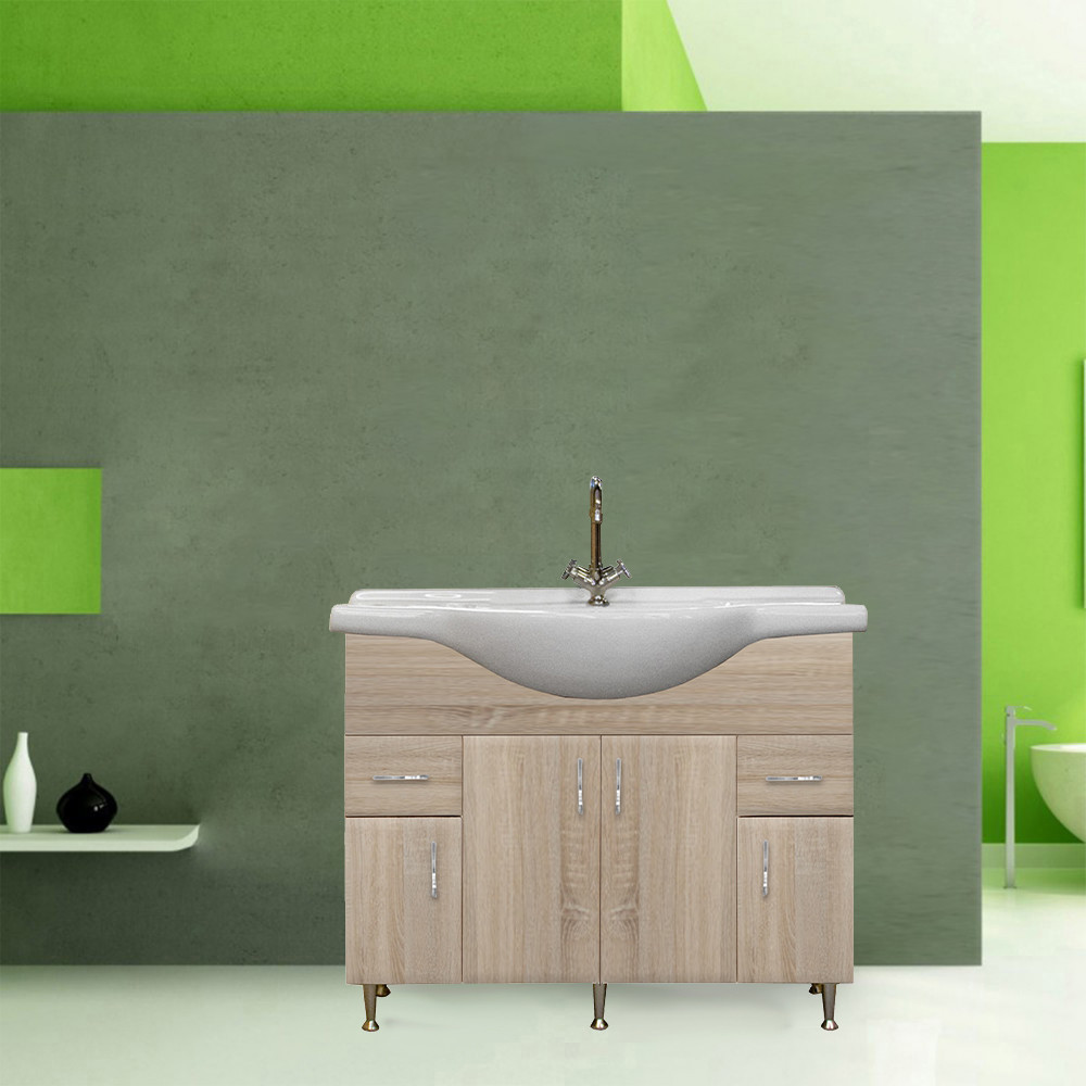 A fürdőszoba bútor kevés helyet foglal viszont tágas szekrénnyel és fiókkal rendelkezik ahol kényelmesen elférnek a fürdőszobai pipere eszközök. Kevés helyigénye miatt kisebb fürdőszobák berendezésére is alkalmas, például panel lakásokban. A termék magas minőségű bútorlapból készül és színben passzoló élzárókkal van ellátva. A fürdőszoba bútor mosdóval együtt kapható.
