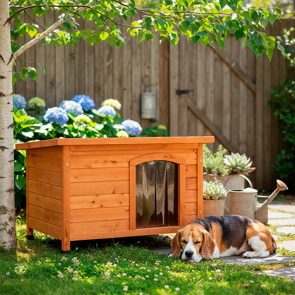 Időjárásálló, lakkozott fa kutyaház