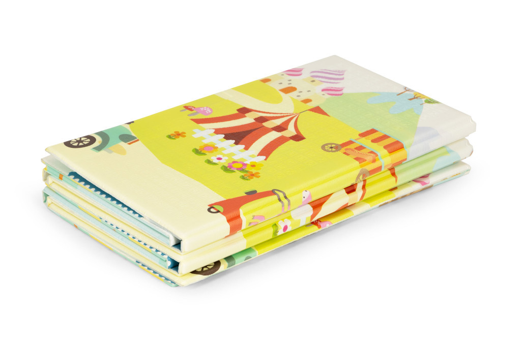 A szőnyeg rendkívül praktikus, könnyen össze- és széthajtható, ami megkönnyíti a tárolást és a szállítást . Két oldala sok szórakozást nyújt: az egyik oldalon egy cirkuszt ábrázoló grafikák vannak állatokkal, a másik oldalon pedig színes grafikák, amelyek állatokat ábrázolnak a nevükkel és betűkkel.