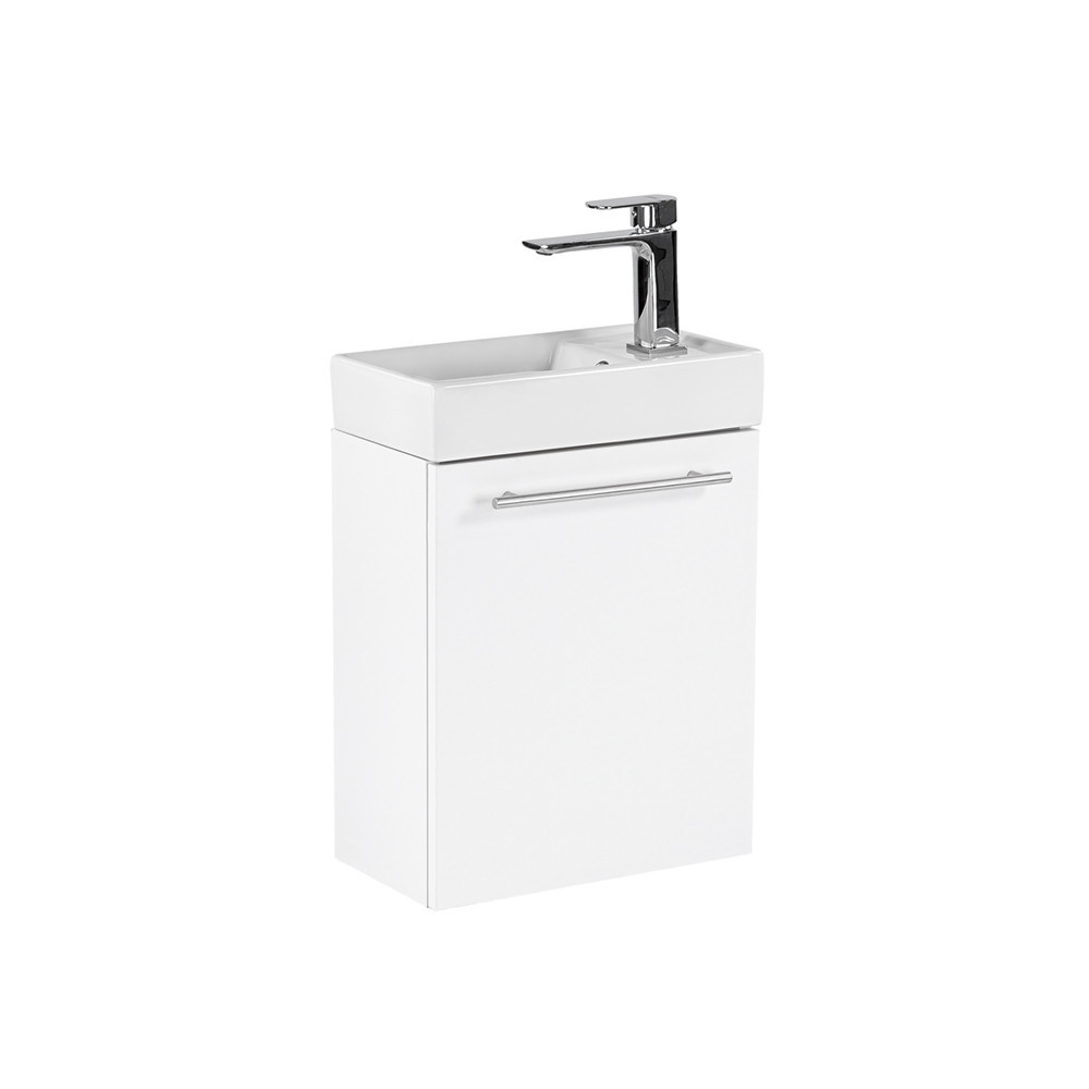 Kis helyigényű minőségi fürdőszoba bútor kisebb fürdőszobákba, vagy mellékhelyiségbe tökéletes kézmosónak. A termék kiváló minőségű bútorlapból készül és színben passzoló élzárókkal van ellátva. A fürdőszoba bútor felfüggesztett kivitelben kapható. A mosdó fehér öntött márvány.