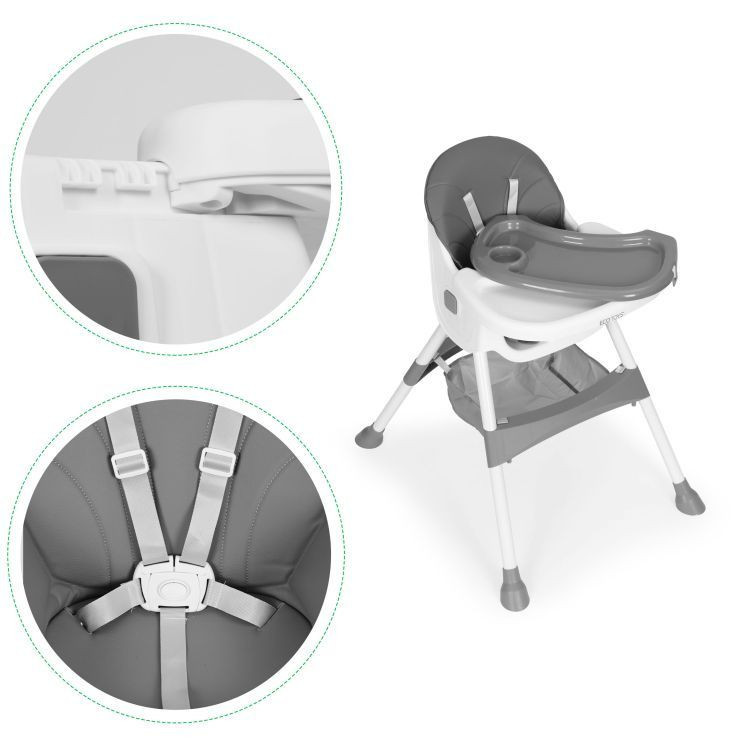 Az etetőszék tökéletes választás minden szülő és gyermeke számára - 6 hónapos kortól kezdődően. Megkönnyíti az étkezéseket azáltal, hogy lehetővé teszi a gyermek számára, hogy felnőttekkel együtt üljön egy asztalnál, segítve a gyermeknek megfigyelni, utánozni és megtanulni a helyes viselkedést. A szék a modern dizájnja és több funkciója mellett tökéletesen betölti szerepét, biztosítva a biztonságos és kényelmes pozíciót. A széles tálcájával a kicsi nemcsak enni, hanem játszani, kockákat építeni vagy rajzolni is tud, és gyorsan megszereti új, különleges bútordarabját.