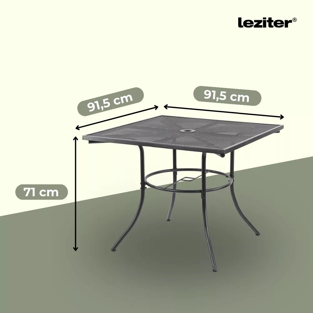 A Leziter Vivi Balcony kerti bútor garnitúra szett antracit színben egy négyzet alakú Melfi kerti asztalt és 2 db Alba összecsukható kerti széket tartalmaz, stabil acél szerkezetével, korrózióálló és porszórt felületkezelésével, valamint kompakt kialakításával ideális választás erkélyre, kisebb teraszra vagy kertbe.