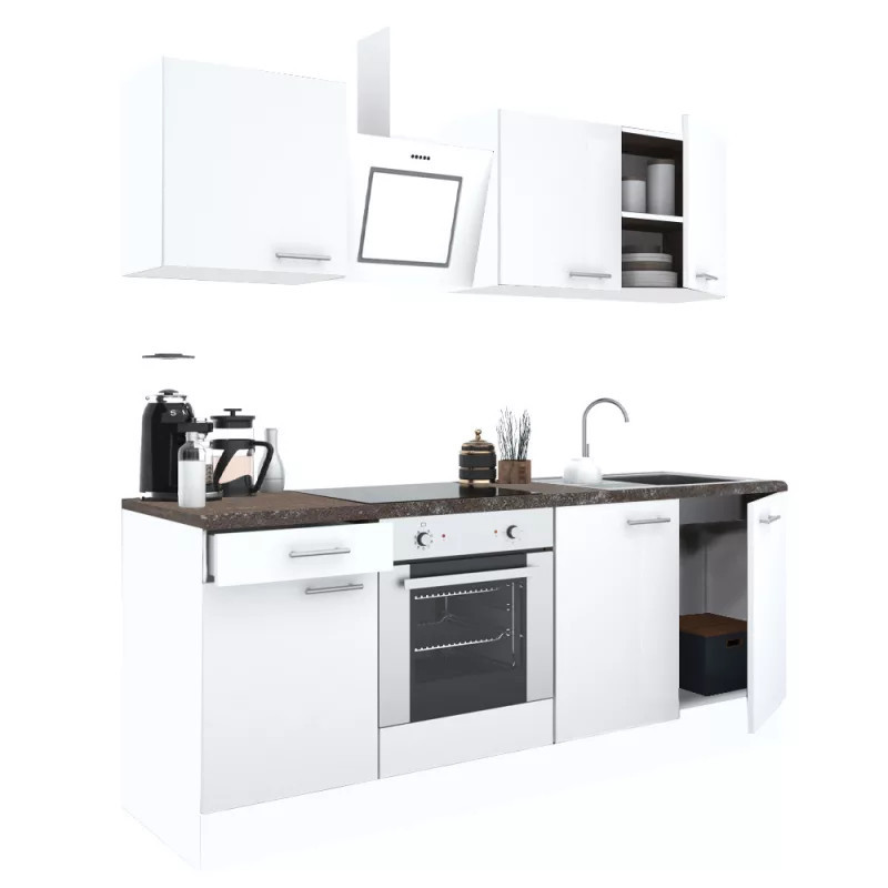 Minőségi hazai gyártású moduláris konyhabútor, mely kielégíti bármely kedves vásárló igényét. Laminált 16 mm-es bútorlapból készülő korpusz, fehér színben. Összeszerelve kellően masszívvá a köldökcsapok, és a konfirmátor csavarok teszik. A munkapult az elemek tetejére egyben kerül legyártásra, mely 28 mm vastag.