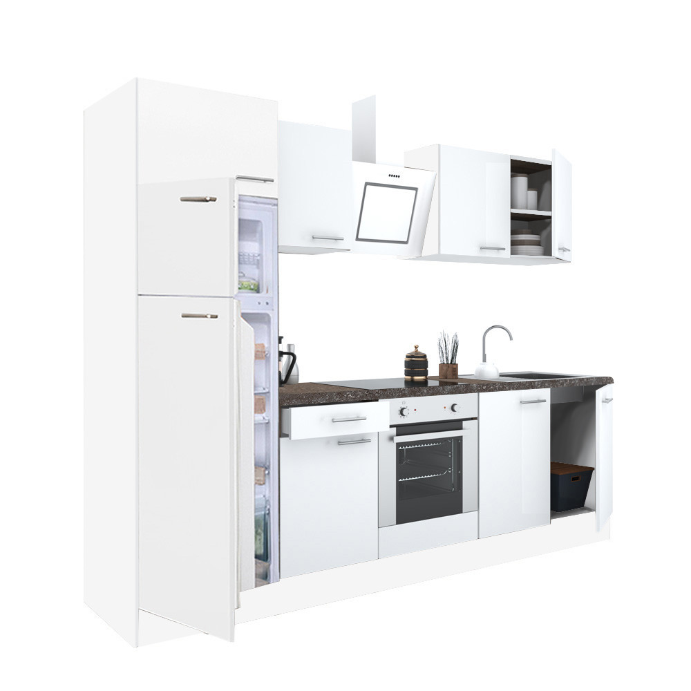 Minőségi hazai gyártású moduláris konyhabútor, mely kielégíti bármely kedves vásárló igényét. Laminált 16 mm-es bútorlapból készülő korpusz, fehér színben. Összeszerelve kellően masszívvá a köldökcsapok, és a konfirmátor csavarok teszik. A munkapult az elemek tetejére egyben kerül legyártásra, mely 28 mm vastag.
