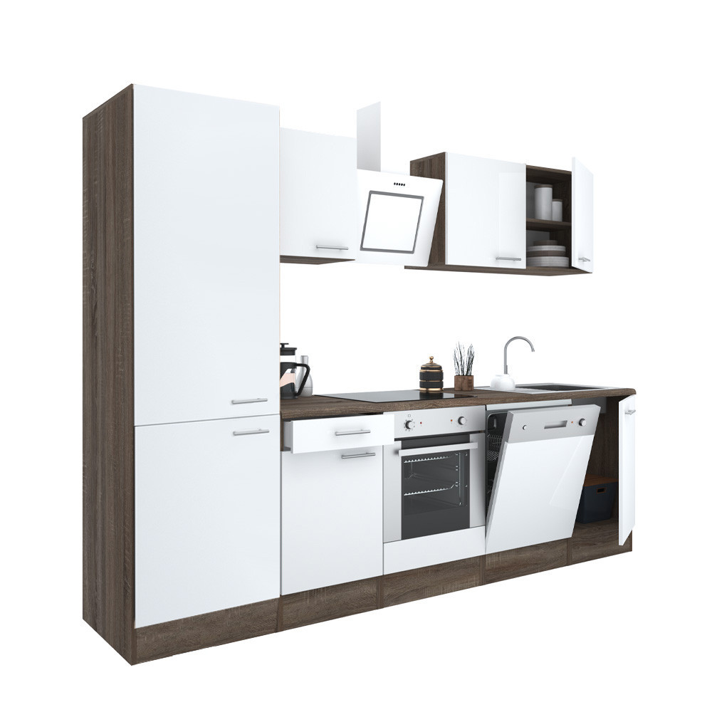 Alsó sütős szekrénnyel, amelynek a kialakításának köszönhetően egy főzőlap is elhelyezhető. Polcos szekrénnyel.