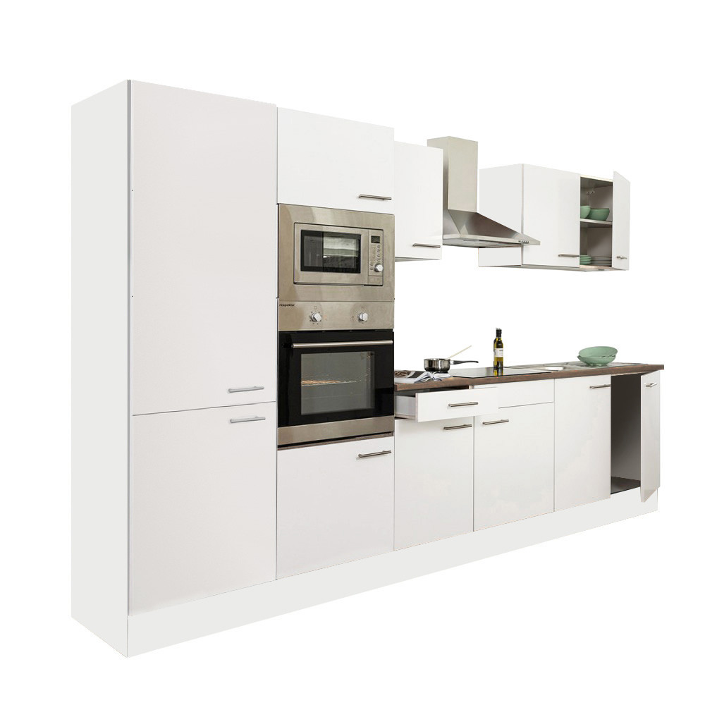 Minőségi hazai gyártású moduláris konyhabútor, mely kielégíti bármely kedves vásárló igényét.Laminált 16 mm-es bútorlapból készülő korpusz, fehér színben. Összeszerelve kellően masszívvá a köldökcsapok, és a konfirmátor csavarok teszik. A munkapult az elemek tetejére egyben kerül legyártásra, mely 28 mm vastag.