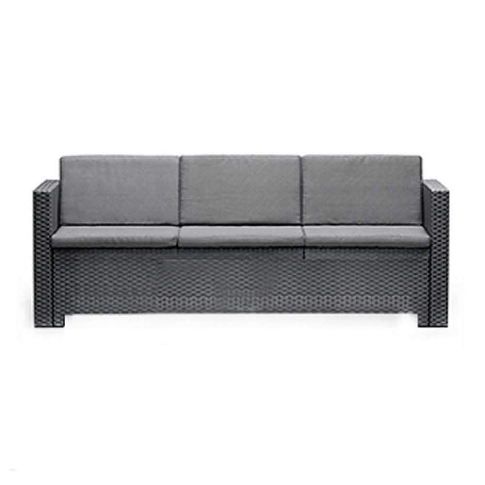 Az elegáns rattan hatású három személyes kerti kanapé sokoldalú kiegészítője lehet, otthonodnak, kertednek, vagy teraszodnak. Nagyon tartós műanyagból készült, a színe univerzális, a szennyeződéseknek is ellenáll.