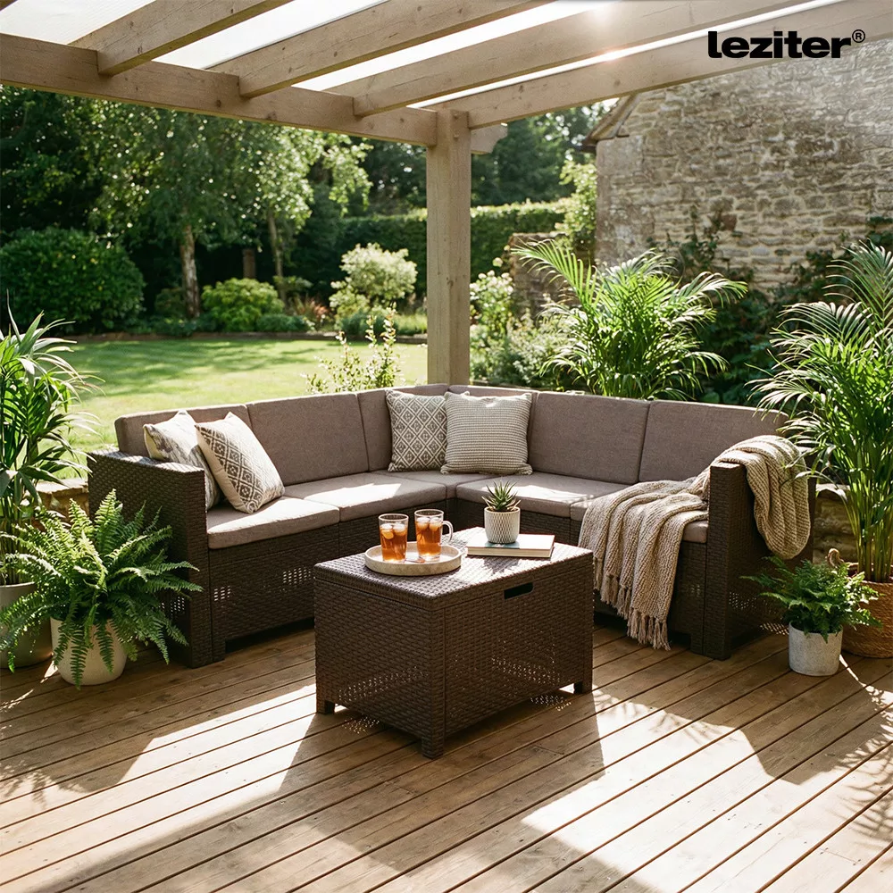 Könnyen tisztítható és praktikus kialakítású sarok kerti bútor garnitúra