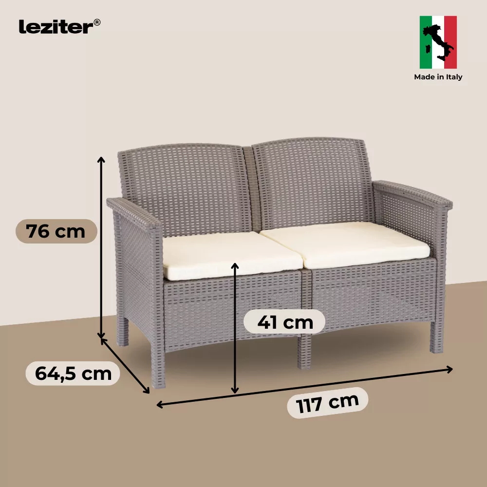 Az időjárásálló műanyag szerkezet ellenáll az UV-sugárzásnak, az esőnek és a nedvességnek, így hosszú távon is megőrzi minőségét. A karbantartásmentes kialakítás lehetővé teszi az egész éves használatot. A felület egyszerűen tisztítható, a párnázott ülőrészek pedig kényelmes használatot biztosítanak.