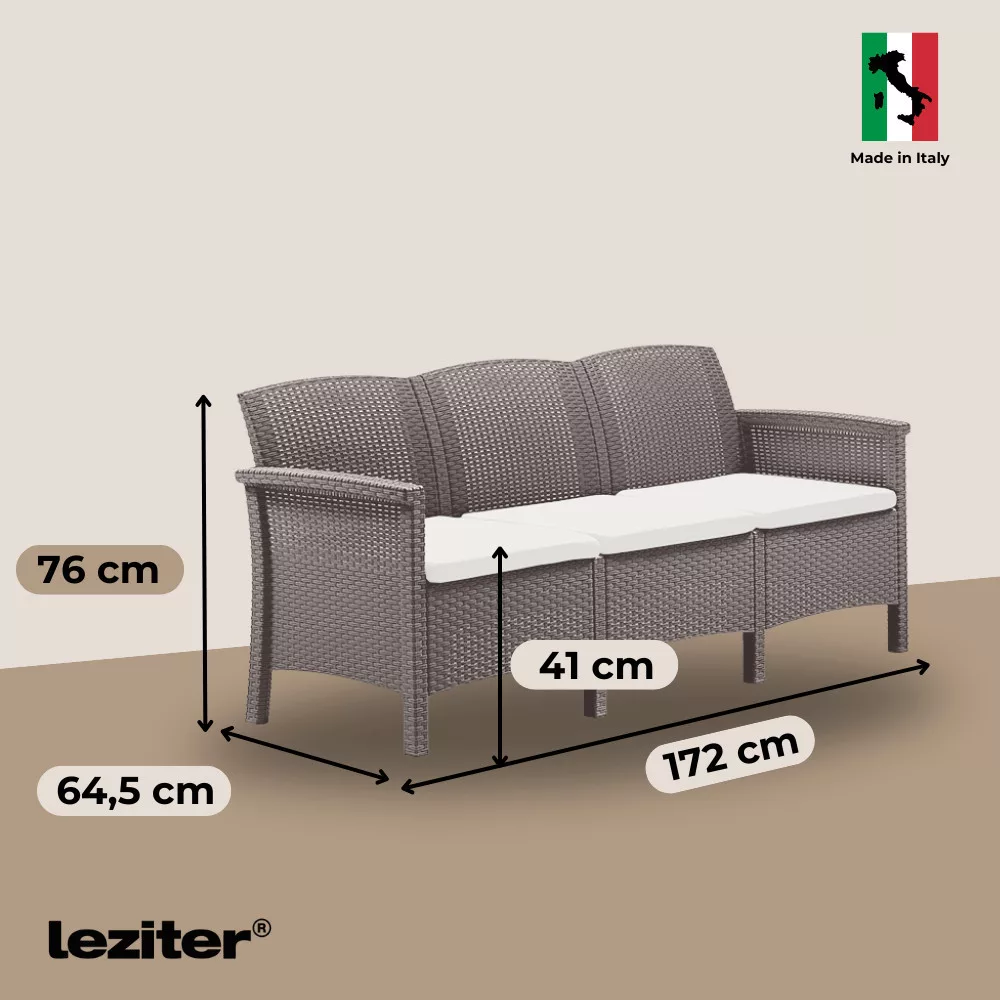 A Venus IV Large 7 személyes kerti bútor garnitúra praktikus és sokoldalú megoldás kültéri pihenéshez és étkezéshez. A három személyes és a két személyes kanapé, valamint a két fotel kényelmes ülőhelyet biztosít családi összejövetelekhez, baráti beszélgetésekhez vagy közös étkezésekhez. A cappuccino szín elegáns és időtálló megjelenést ad a kertnek vagy terasznak.