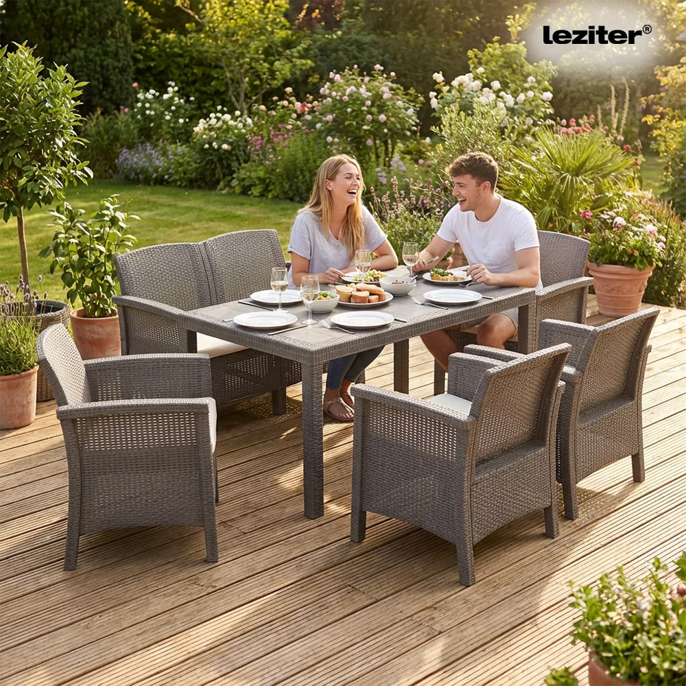 Válaszd a Venus IV 6 személyes kerti bútor garnitúrát, és alakíts ki stílusos, kényelmes kültéri étkező- és pihenőteret otthonodban!