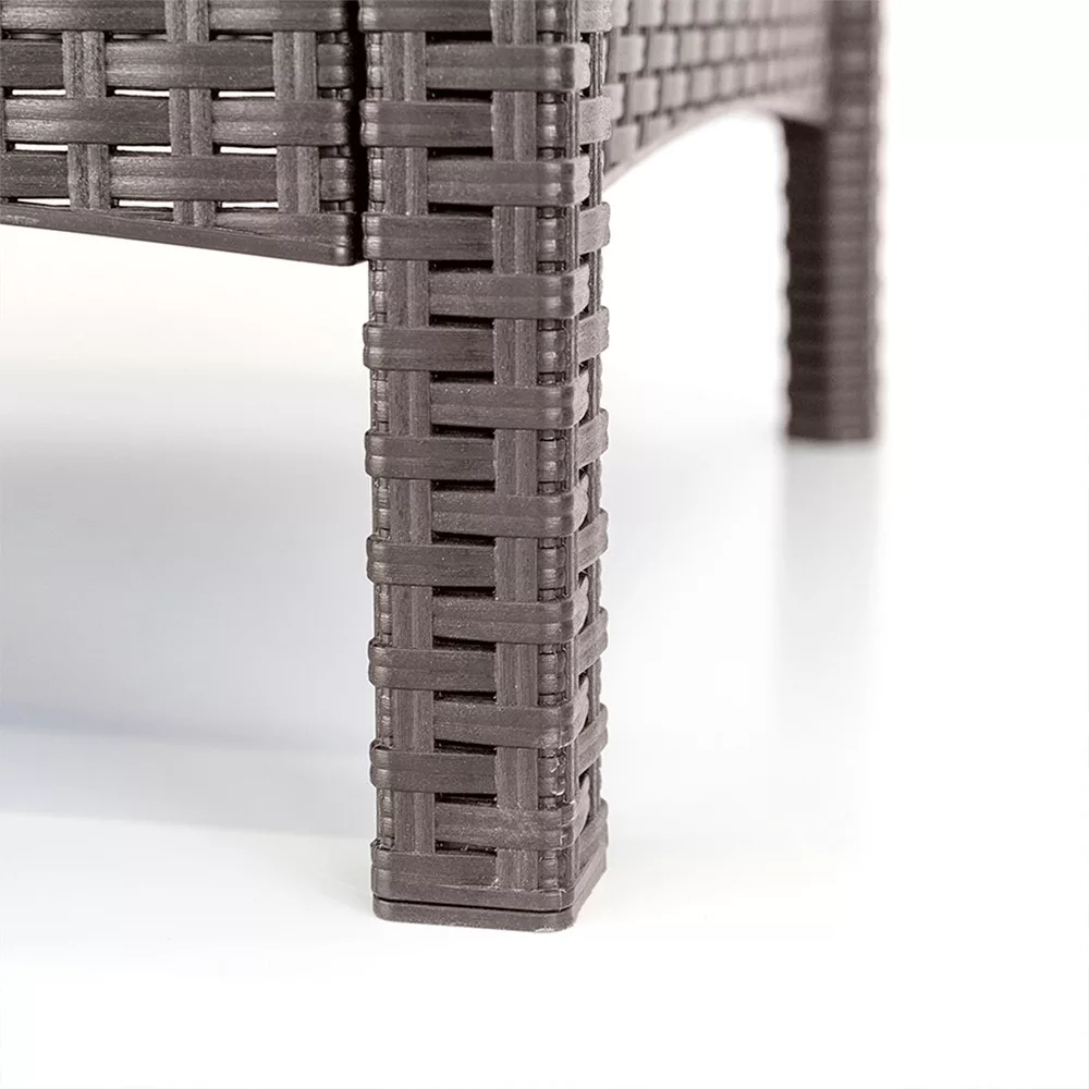 Az időjárásálló műanyag kialakítás ellenáll az UV-sugárzásnak, az esőnek és a nedvességnek, így a bútor hosszú távon is megőrzi állapotát. A karbantartásmentes felület egyszerűen tisztítható, a párnázott ülőrészek pedig kényelmes használatot biztosítanak mindennapi használat során is. A stabil szerkezet hosszú élettartamot garantál.