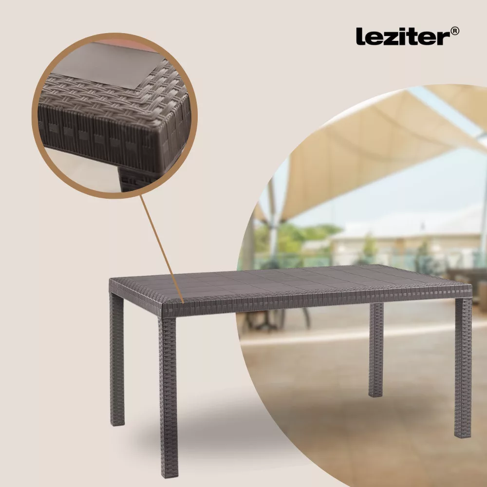 A Venus IV Set 4 személyes kerti bútor garnitúra kompakt és kényelmes megoldás kültéri étkezésekhez és pihenéshez. A négy szék és a nagyméretű, négyszögletes asztal elegendő helyet biztosít családi étkezésekhez vagy baráti beszélgetésekhez. A cappuccino szín elegáns és időtálló megjelenést ad a kertnek, terasznak vagy erkélynek.
