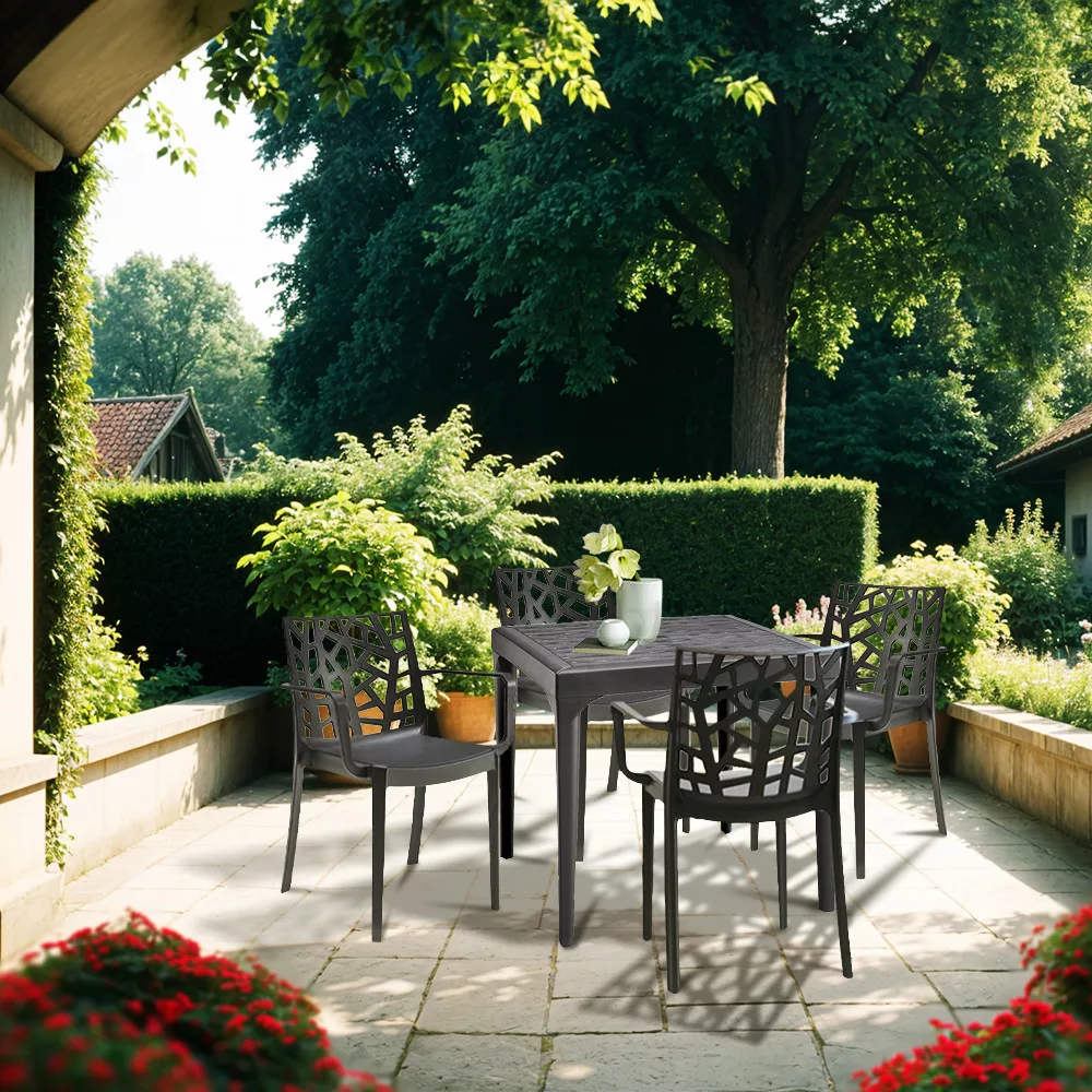 A strapabíró műanyag szerkezetnek köszönhetően ellenáll az időjárás viszontagságainak, így UV sugárzásnak és esőnek is tökéletesen ellenáll. Ideális választás családi és baráti összejövetelekhez, kávézásokhoz és étkezésekhez a szabadban.
