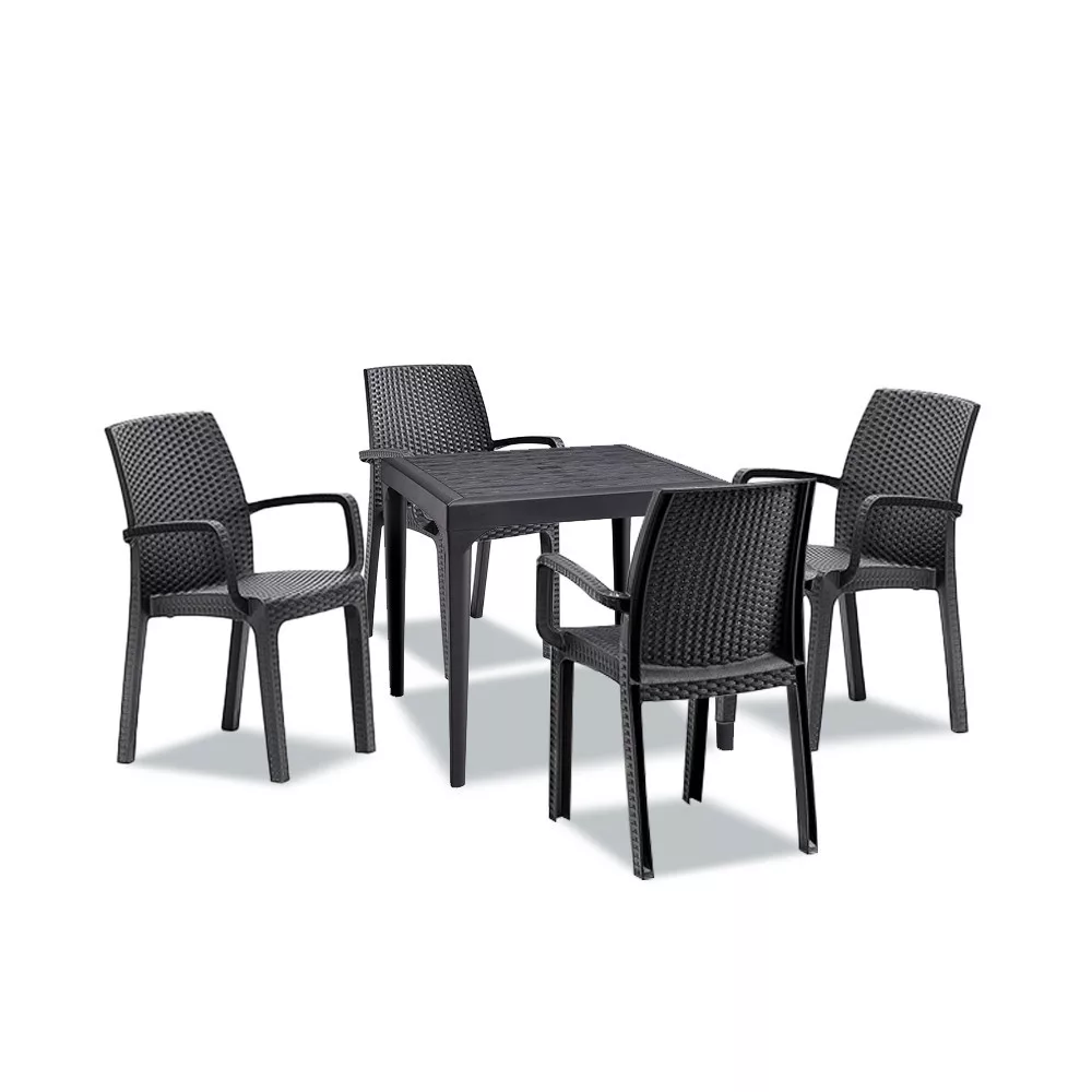 A szett tartalmaz Malina műanyag kerti asztalt (80x80x74 cm), négy Verdi kerti széket (57x59x86). A tágas kialakítás lehetővé teszi, hogy barátaival és családjával kellemes étkezéseket és beszélgetéseket tartsanak a szabadban.