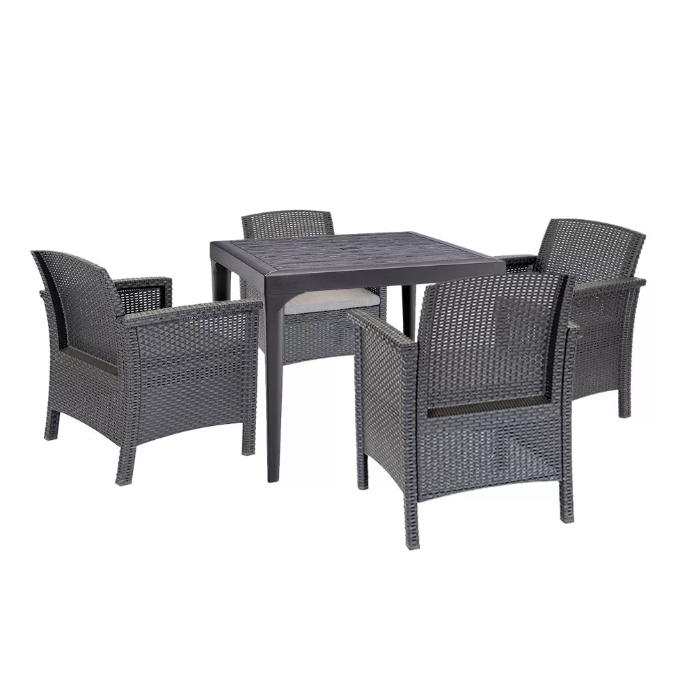 Ne várj tovább – a Rimer 4+1 garnitúra szett tökéletes társ a szabadban töltött pihenéshez!Rendeld meg most, és teremts magadnak egy modern, kényelmes és praktikus szabadtéri sarkot!