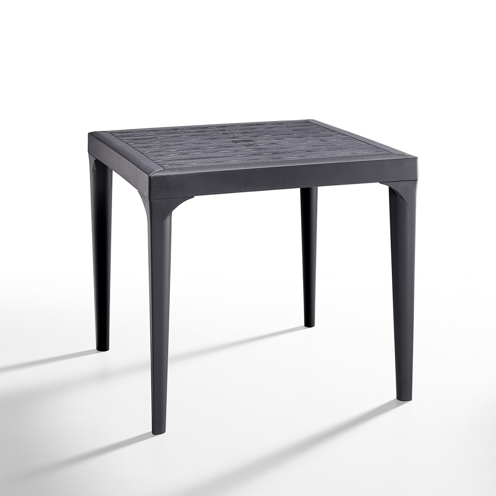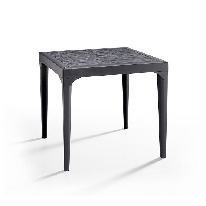 Olaszországban készült ez a grafit színű, kényelmes és elegáns, 80x 80x 74 cm-es négyszögletes magas műanyag asztal. Könnyen össze szerelhető, nem igényel szakmai tudást. Időtálló és jól tűri az időjárási viszontagságokat, évek múlva is számíthatsz rá. Könnyen mozgatható, így mindig oda teheted, ahol éppen szükséged van rá.