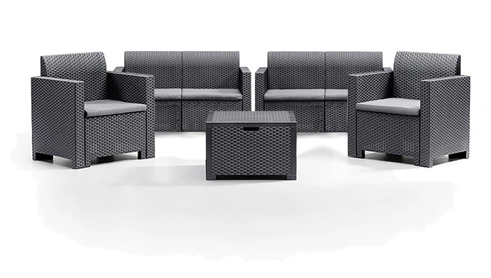 Ez a garnitúra a káros UV sugáraknak és az időjárás viszontagságainak is ellenálló műanyagból készült. Egész évben használható, tartós, időtálló választás. A bútor szett ideálisan beleillik minden ház körüli térbe, ahol megfelelő helyet teremt a szabad levegőn való pihenéshez, szórakozáshoz, de egy étterem teraszán is tökéletes launge hangulatot varázsolhatunk vele. Természetes rattan fonással inspirált felülete a termék esztétikai előnyei közé sorolható.