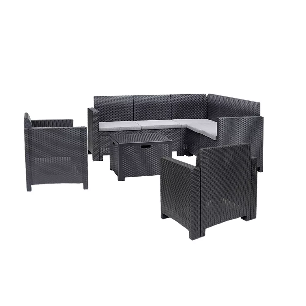 Tökéletes kerti összejövetelre: A Nero V 7 sarok kerti bútor garnitúra elegáns és praktikus kiegészítője lehet minden terasznak és kertnek. Ez a modern grafit színű bútor szett egy öt személyes, kényelmes sarok kanapét, két kerti kanapét és egy multifunkcionális négyszögletes asztalt kínál, amely tárolóként is szolgálhat. Ez a szett tökéletes választás nagyobb családi vagy baráti összejövetelekhez. A szett méreteinek köszönhetően bőven elegendő helyet biztosít az egész család számára.