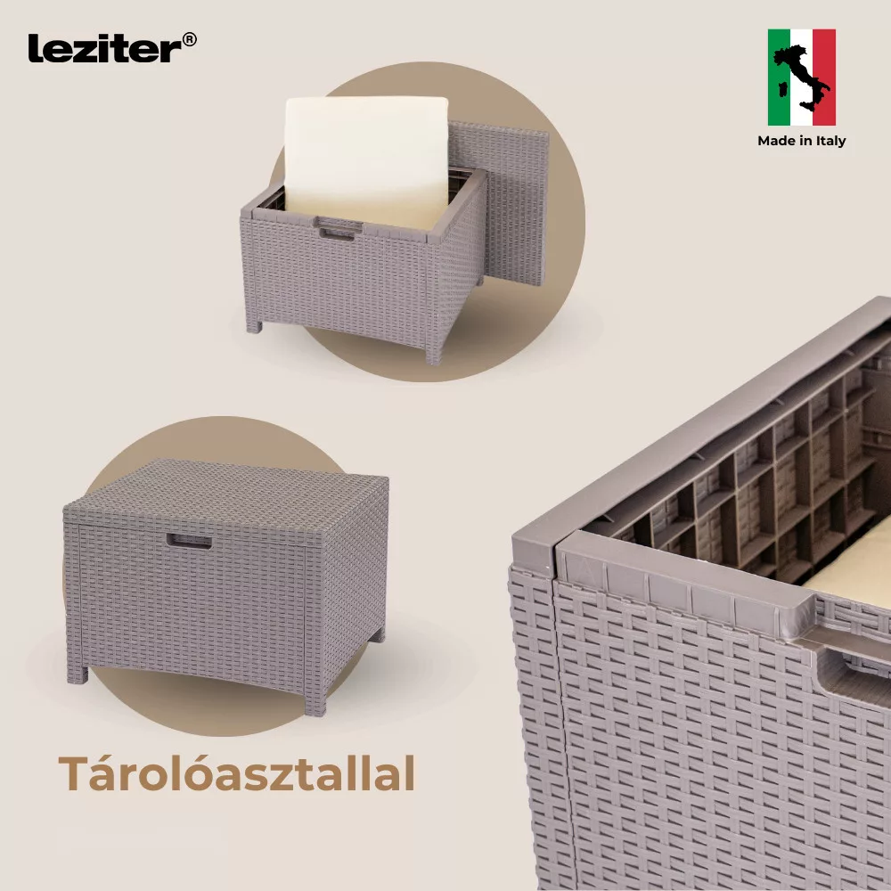 Az időjárásálló műanyag rattan ellenáll az UV-sugárzásnak és a környezeti hatásoknak, így hosszú távon is megőrzi minőségét. A bútor karbantartást nem igényel, felülete egyszerűen tisztítható vízzel vagy enyhe tisztítószerekkel. A párnák is könnyen tisztíthatók, így a mindennapi használat során is praktikus megoldást nyújt.