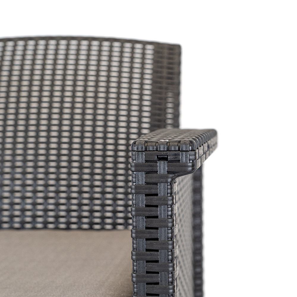 Ez egy kivételesen elegáns és kényelmes kerti kanapé, amely kompletten három párnákkal érkezik. A grafit színű bútorhoz néhány árnyalattal világosabb párnák tartoznak, melyek semleges színe minden térbe jól illeszthető és dekorpárnákkal egyedi stílusra alakíthatók.
