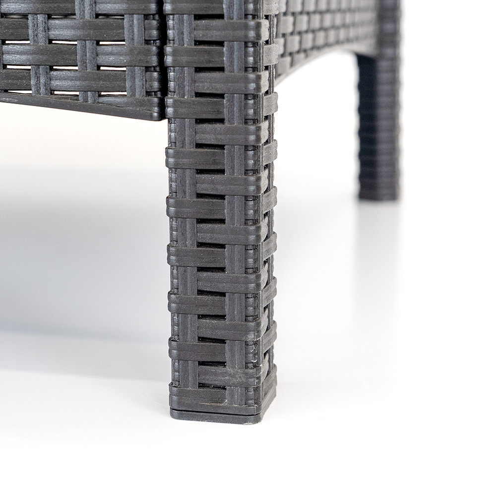 A kanapé borítása a hagyományos rattan felületet utánozza, de műanyag voltánáál fogva karbantartásmentes, időtállóbb megoldás a hagyományos rattannál. Alapanyaga polipropilén, mely vízálló, ellenáll a szélsőséges időjárási viszonyoknak és az UV-nek. Ez az enyag a legtöbbször újrahaszonsított, így fenntartható megoldást kínál.