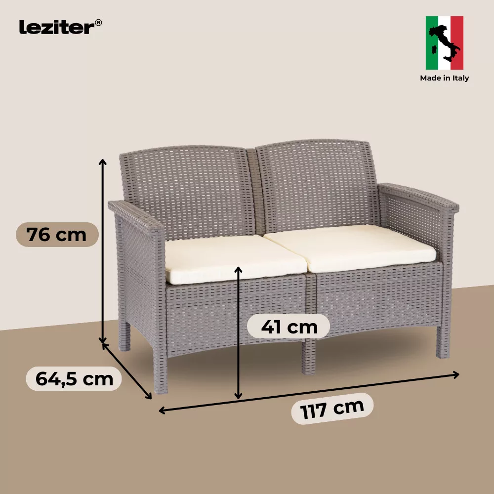 A fröccsöntött polipropilén szerkezet ellenáll az UV-sugárzásnak és az időjárás viszontagságainak, így hosszú távon is megőrzi minőségét. A karbantartásmentes felület nem igényel festést vagy speciális kezelést. A bútorok tisztítása egyszerű, a párnák pedig moshatók, ami praktikus mindennapi használatot tesz lehetővé.
