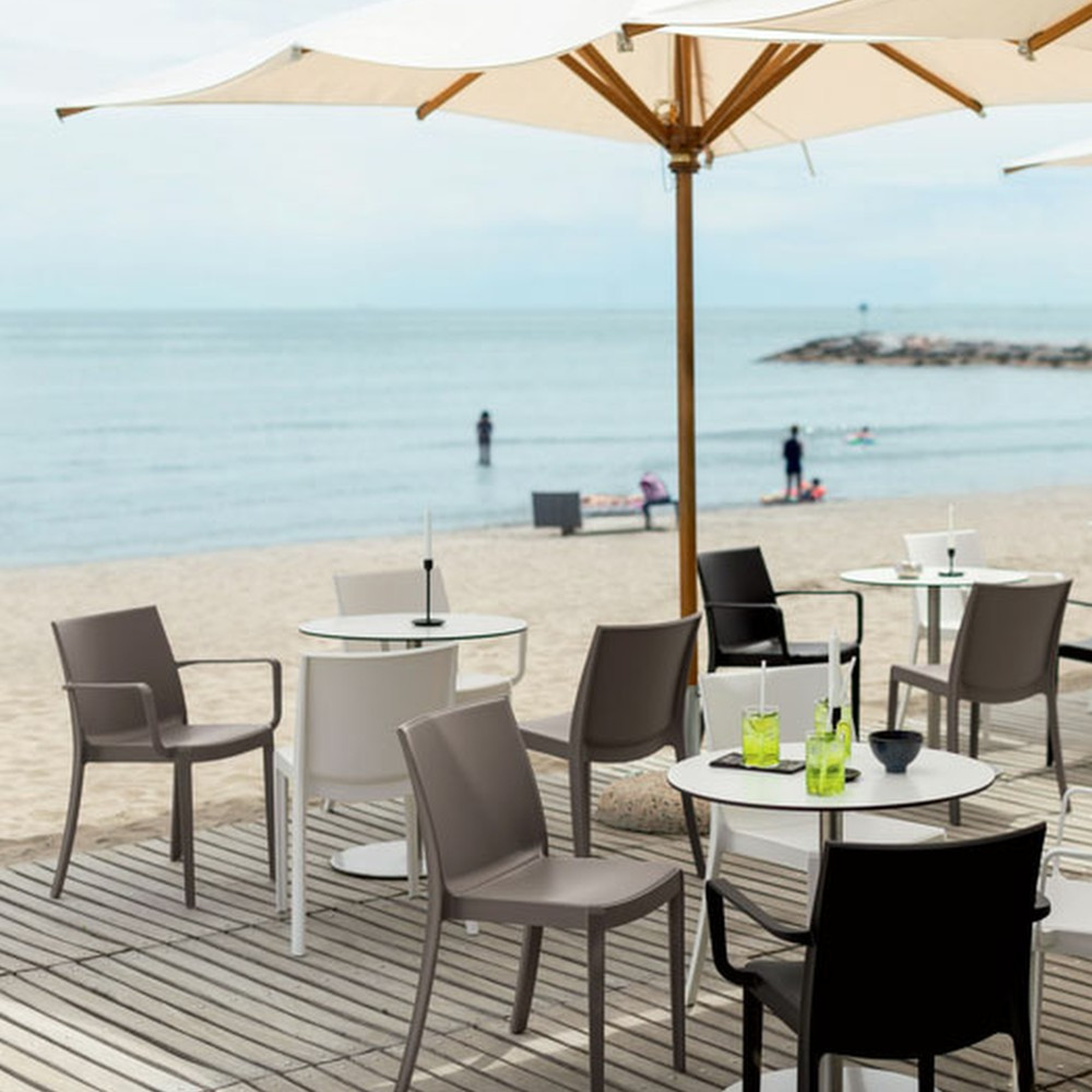 A szék műanyagból, polipropilénből készül. Ennek előnye, hogy bútor könnyen mozgatható, elegáns, mégis tartós és stabil, így biztonságosan használhatja. A gyártáshoz használt műanyag nagy részben újrahasznosított, így fenntarthatóbb választás lehet. A műanyag bútor további előnye, hogy vízálló, ellenáll a szélsőséges időjárási viszonyoknak és az UV sugárzásnak és könnyen tisztítható.