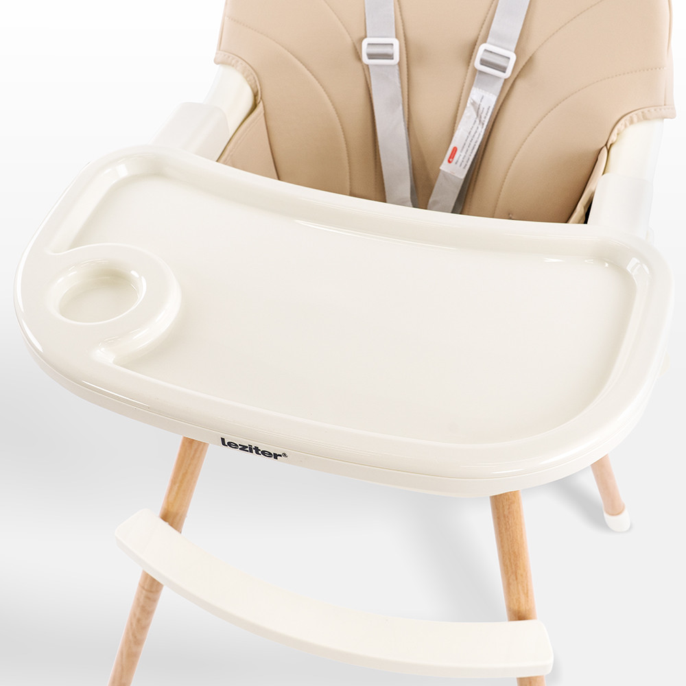Az 5 pontos biztonsági öv stabilan a helyén tartja a gyermeket étkezés közben. A lekerekített formák és a gondosan kialakított ülőrész segítenek abban, hogy a használat kényelmes és biztonságos legyen, még aktívabb mozgás esetén is.