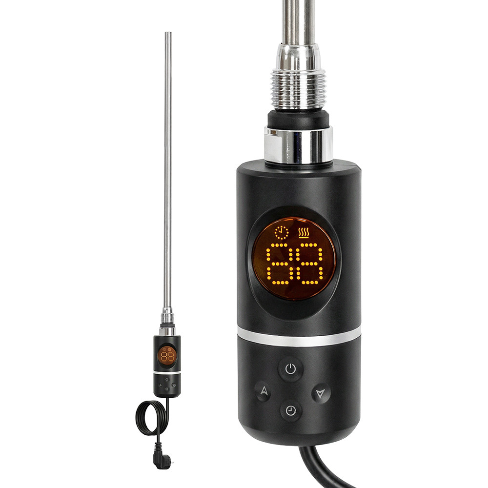Elektromos fűtőpatron törölközőszárító radiátorhoz digitális hőfokszabályozóval 600W fekete – precíz vezérlés, nagy teljesítmény, modern design
