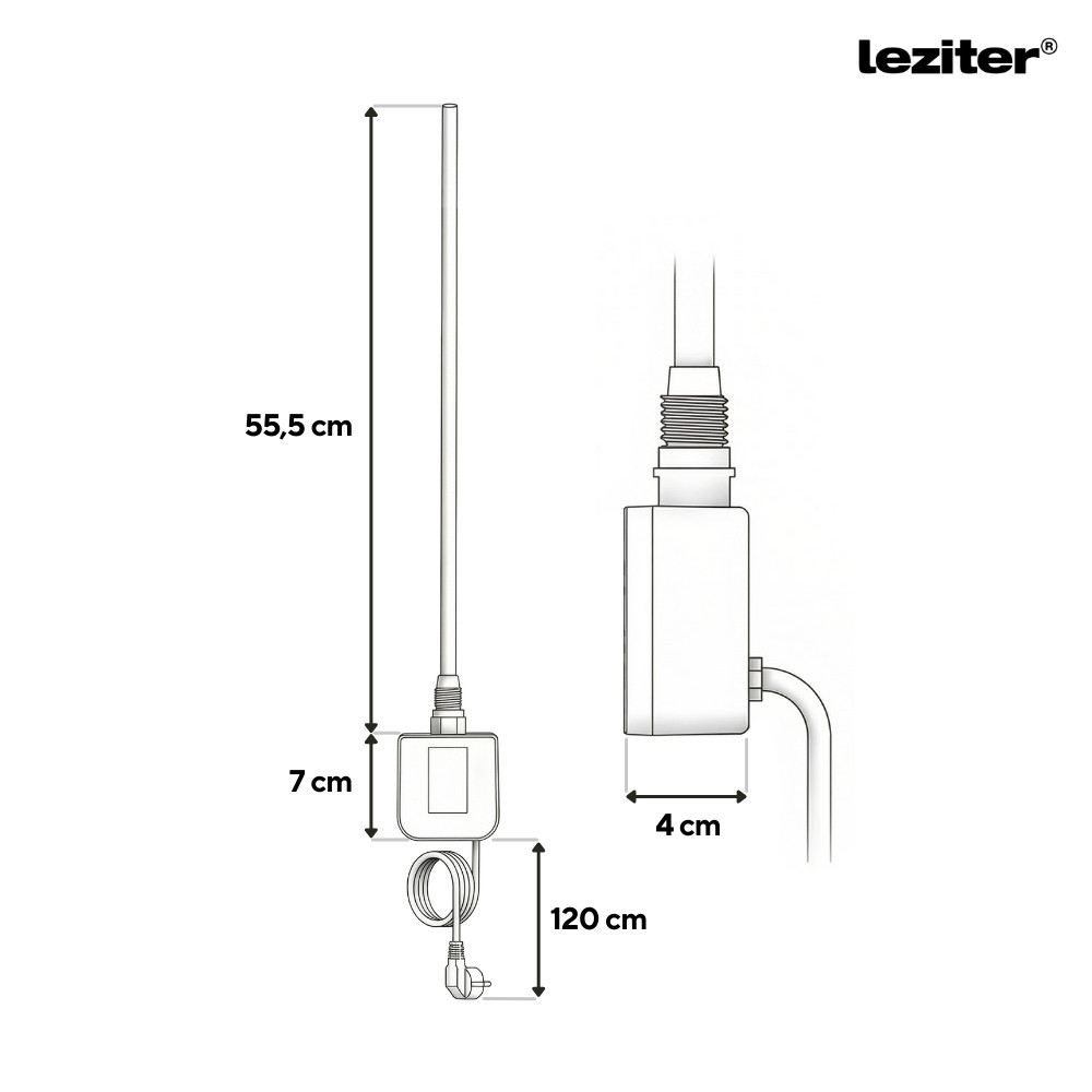 Az univerzális csatlakozásnak köszönhetően szinte minden szabványos törölközőszárító radiátorhoz illeszthető, így könnyen telepíthető és azonnal használatra kész.